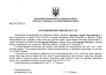 Канівський міськрайонний суд Черкаської області викликає Драченка Андрія Миколайовича в якості відповідача по справі № 697/1188/18 за позовом Бондаренко Надії Андріївни до Драченка Андрія Миколайовича про визнання особи такою,що втратила право користування житловим приміщенням в судове засідання, яке відбудеться 05 вересня 2018 року о 10 год. 15 хв. та 06 вересня 2018 року о 10 год. 15 хв. в приміщенні суду за адресою: Черкаська область, м. Канів, вул. Успенська, 22.