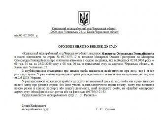 Канівський міськрайонний суд Черкаської області викликає Макарова Олександра Геннадійовича в якості відповідача по справі № 697/3073/19 за позовом Макарової Оксани Григорівни до Макарова Олександра Геннадійовича про стягнення аліментів в судове засідання, яке відбудеться 02.03.2020 року о 09 год. 30 хв. та 03.03.2020 року о 08 год. 30 хв. в приміщенні суду за адресою: Черкаська область, м. Канів, вул. Успенська, 22.